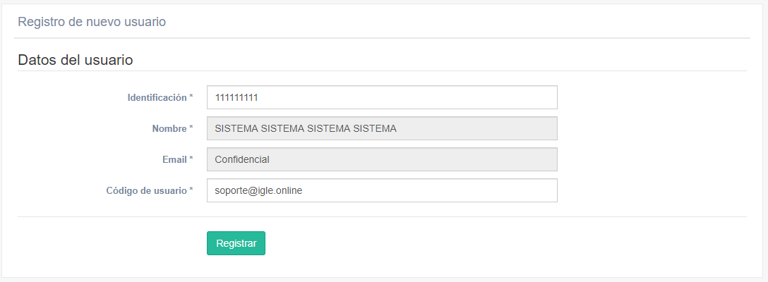 Siempre se debe verificar que el correo electrónico indicado en el campo Email, corresponda al de la persona para la cual se desea crear el usuario ya que la información de las credenciales de acceso será remitida por este medio.